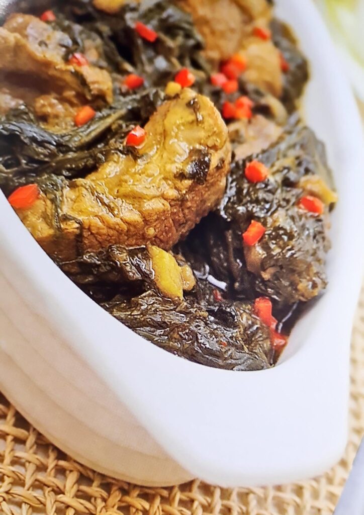 Pasamos el guiso en una fuente para servir y lo adornamos con pimiento rojo picado. Se sirve