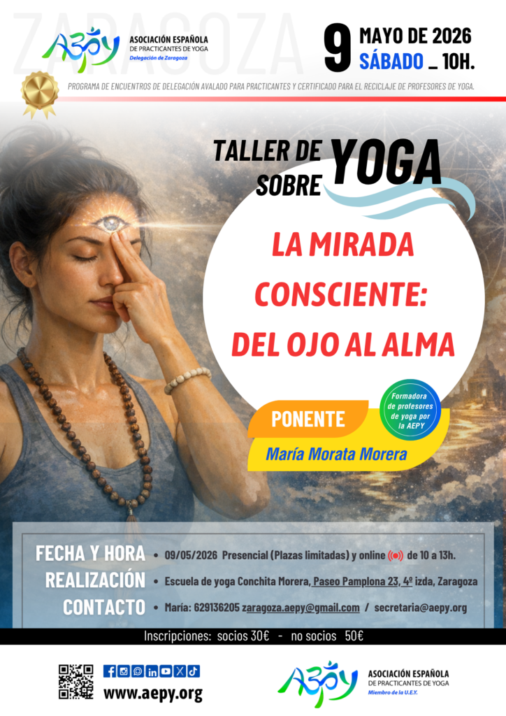 Presencial en: Escuela de Yoga Conchita Morera, Paseo Pamplona 23 4ºIzquierda, Zaragoza (El aforo es limitado y se respetará el orden de inscripción)